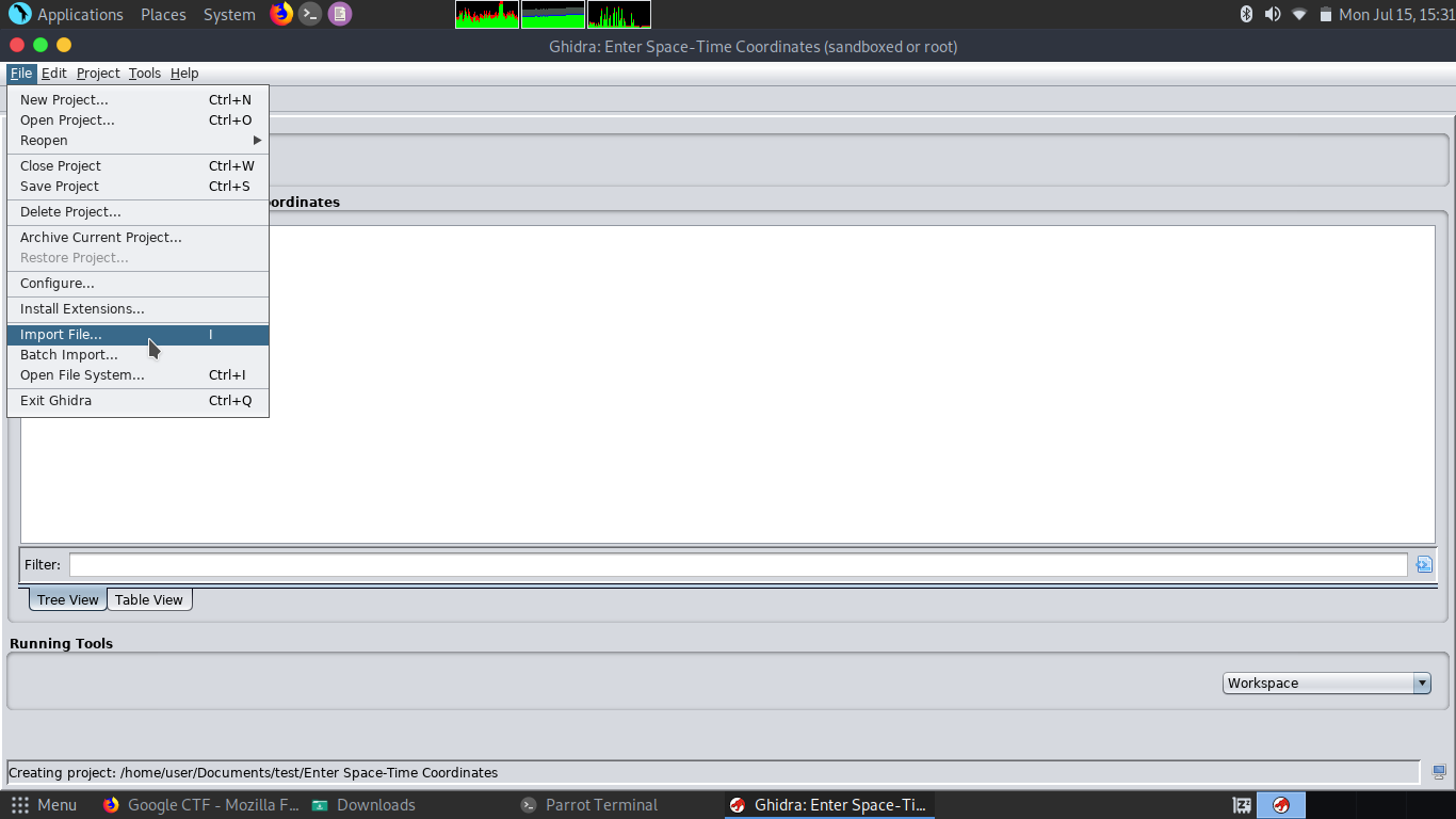 Setelah itu di ghidra klik menu file lalu pilih new project